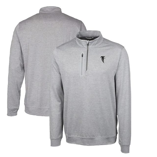 Men's Cutter & Buck Gray Atlanta Falcons Stealth Heathered Big Tall Throwback Logo Quarter-Zip Pullover Top