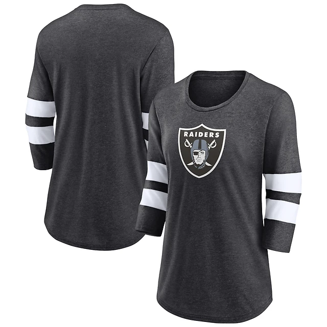 Women's Fanatics Heathered Charcoal Las Vegas Raiders Primary Logo 3/4 Sleeve Scoop Neck T-Shirt
