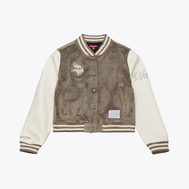 Women's Mitchell & Ness Tan Minnesota Vikings Full-Snap Varsity Jacket