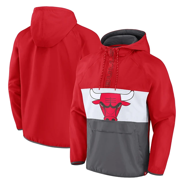 Men's Fanatics Red/Gray Chicago Bulls Anorak Flagrant Foul Color-Block Raglan Hoodie Half-Zip Jacket