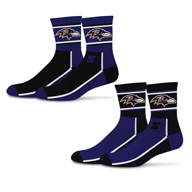 Unisex Starter Black/Purple Baltimore Ravens Double Color Block 2-Pack Mid-Crew Socks