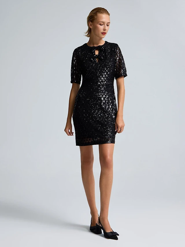 Dotted Roll Up Sleeve Half Zip Blouse - Black