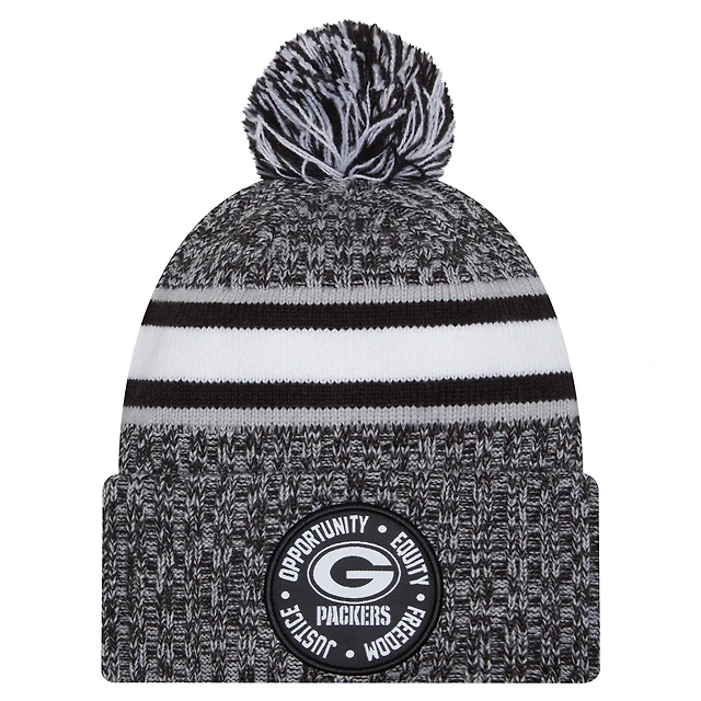 Men's New Era Black Green Bay Packers Inspire Change Cuffed Knit Hat with Pom