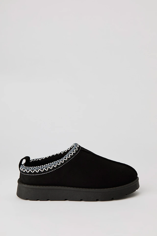 Faux Suede Stitched Trim Platform Slipper Booties