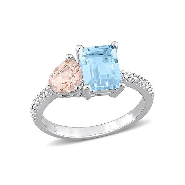 Julianna B Sterling Silver 0.10CT Diamond, Blue Topaz & Morganite Ring