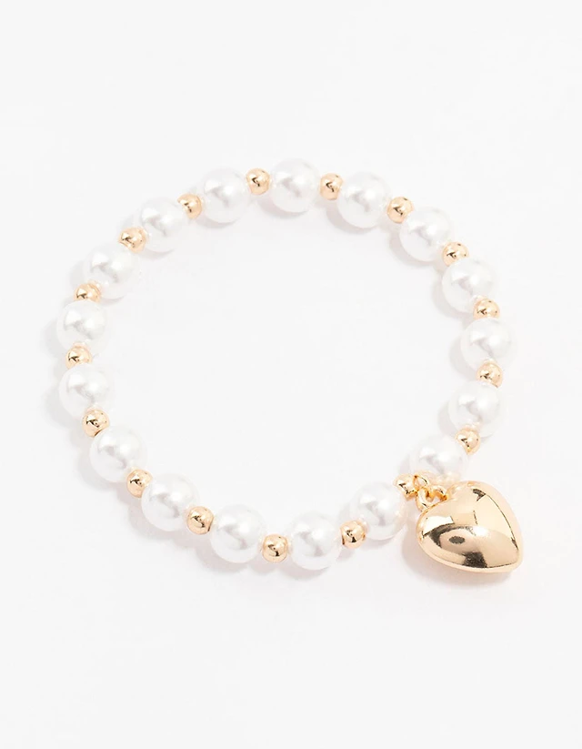 Beaded Pearl Heart Charm Bracelet