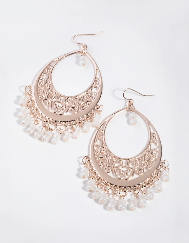 Rose Gold Pink Facet Bead Hoop Earrings
