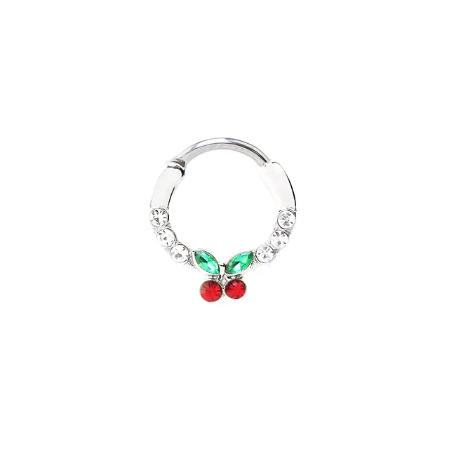 Silvertone CZ Cherry Hinged Septum Ring - 16 Gauge