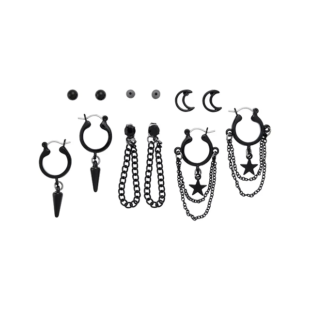 Multi-Pack Pentagram Stud and Hoop Earrings - 9 Pair