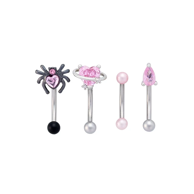 Multi-Pack Pink CZ Heart Labret Rings and Hoop 4 Pack - 18 Gauge