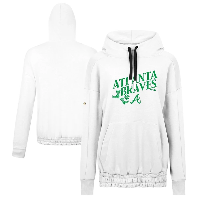 Women's Levelwear White New York Mets St. Patrick's Day Waterfall Boots Pullover Hoodie