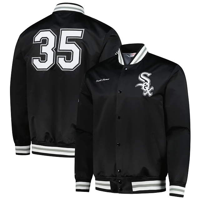 Men's Mitchell & Ness Frank Thomas Black Chicago White Sox Legends Collection Vintage Satin Full-Snap Jacket