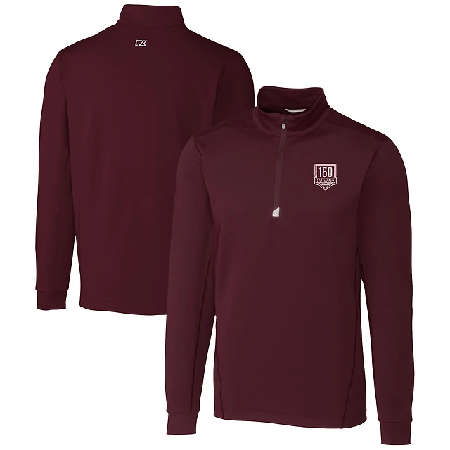 Men's Cutter & Buck Crimson Harvard Football 150th Anniversary DryTec Traverse Stretch Quarter-Zip Pullover Top