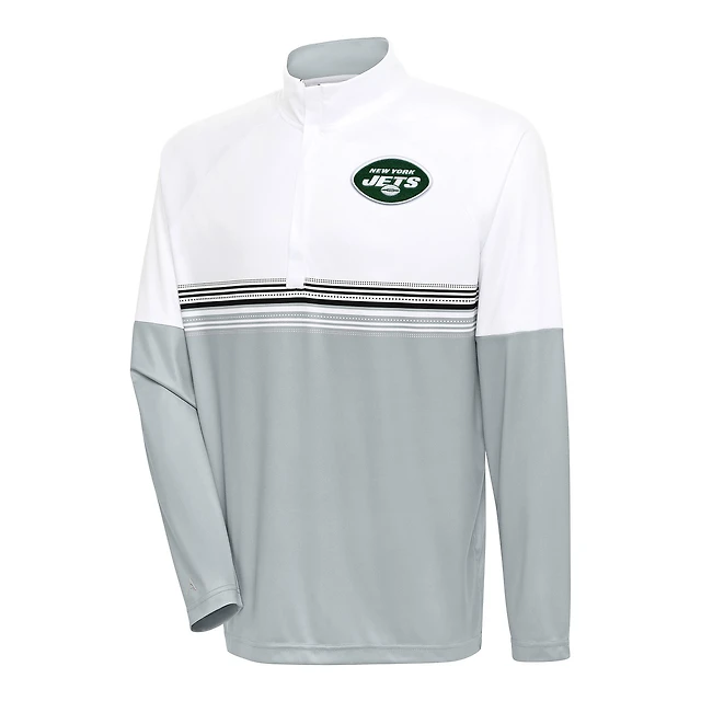 Men's Antigua White/Black New York Jets Bender Quarter-Zip Pullover Top