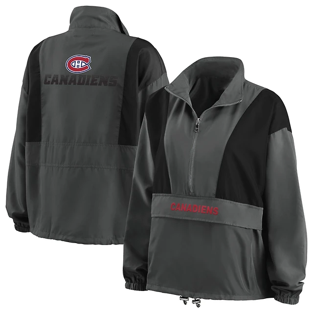 Women's WEAR by Erin Andrews Black Montreal Canadiens Packable Popover - Half-Zip Jacket