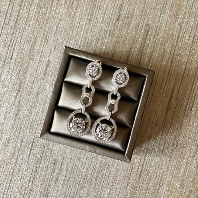 Silver Diamond Simulant Crystal Link Earrings