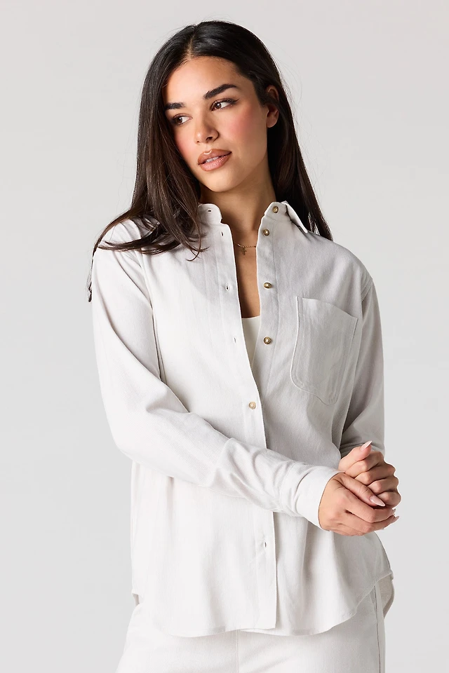 Haut écourté boutonné avec imprimé à carreaux et broderie en sergé
