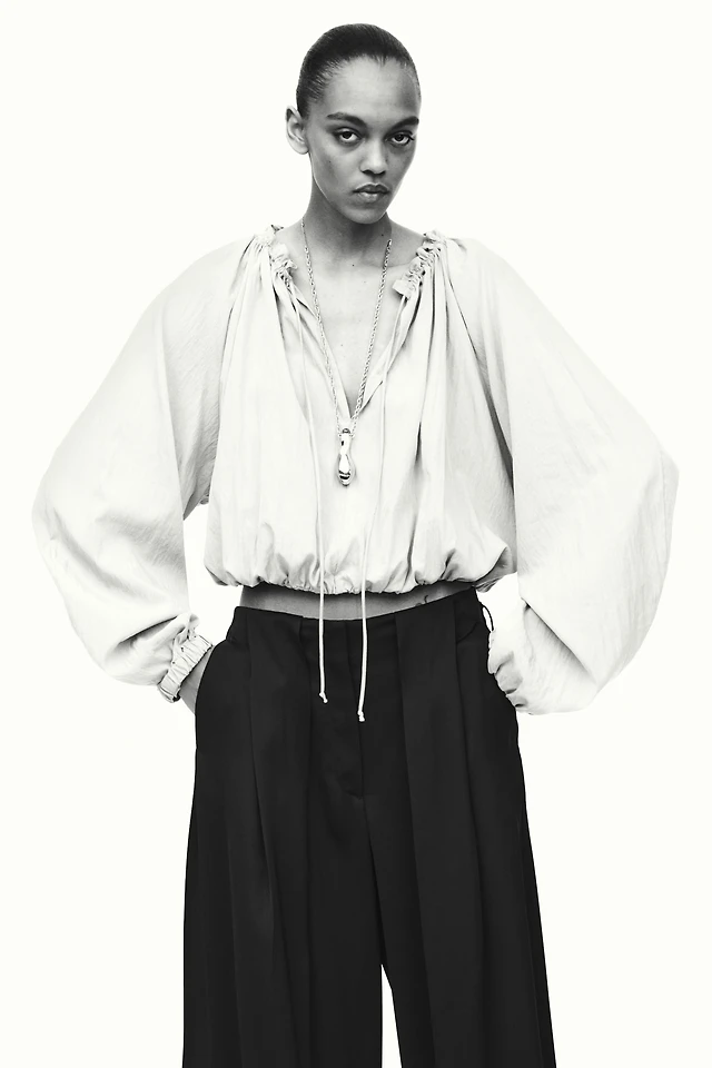 Raglan Flounce Chiffon Blouse in Sand by Haver + Blair
