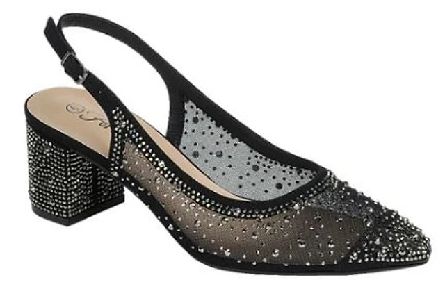 Rhinestone Slingback Dress Heels: Blk