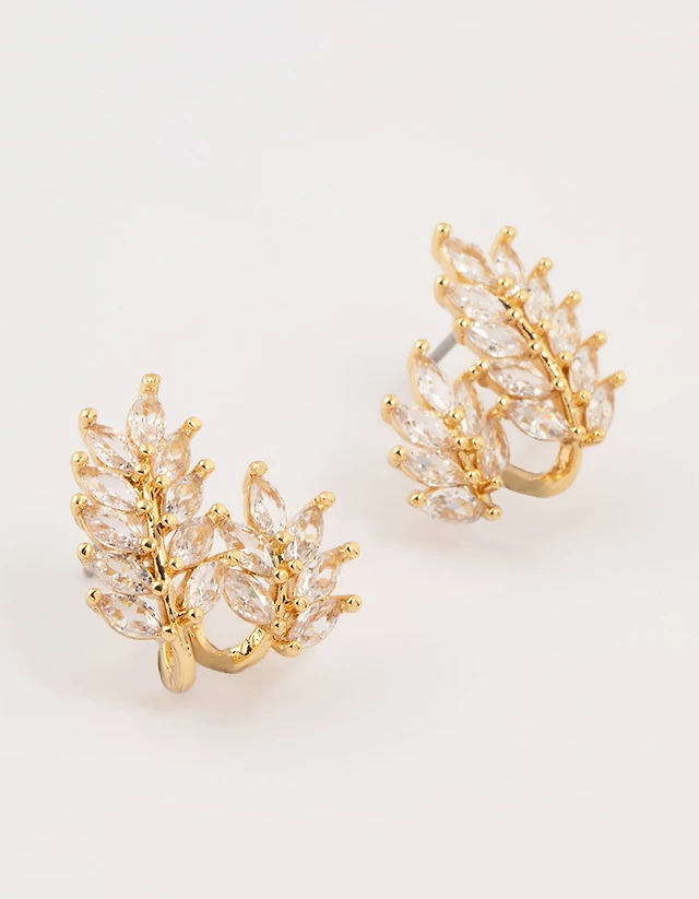 Gold Plated Cubic Zirconia Roman Leaf Crawler Earrings