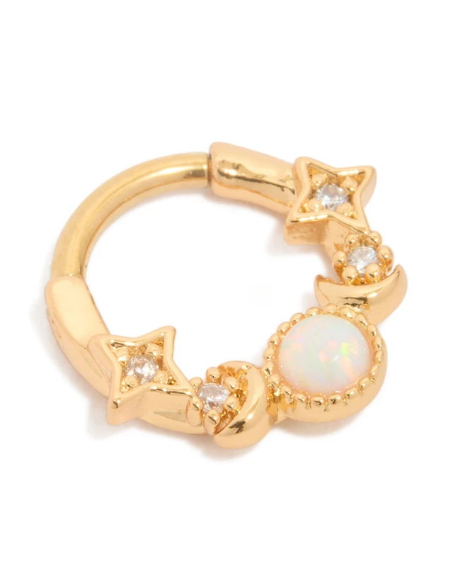 Gold Plated Titanium Celestial Opal Clicker Ring