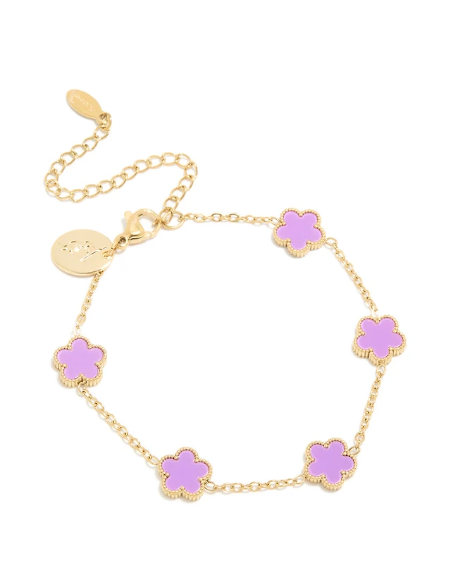 Waterproof Gold Plated Stainless Steel Light Purple Petal Flower Charm Bracelet