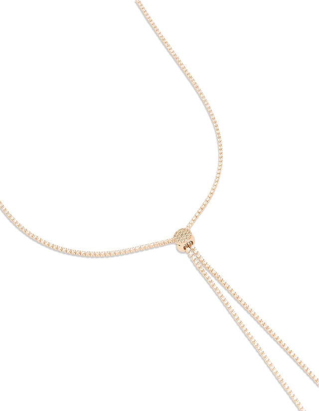 Gold Plated Pink Beaded Lariat Cross Necklace