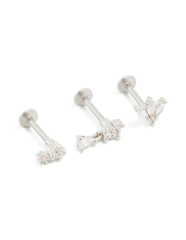 Kids Gold Plated Surgical Steel Cubic Zirconia Fine Zigzag Flat Back Studs