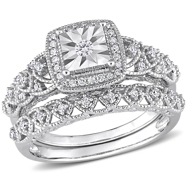 Julianna B Sterling Silver 0.25CTW Diamond Bridal Set