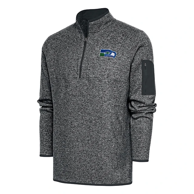 Men's Antigua Heather Charcoal Seattle Seahawks Throwback Fortune Big & Tall Quarter-Zip Pullover Jacket