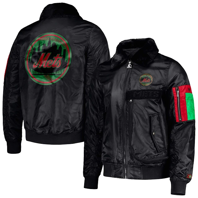 Men's Starter x Ty Mopkins Black New York Mets History Month Satin Full-Zip Jacket