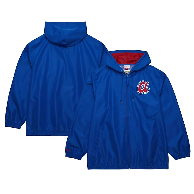 Men's Mitchell & Ness Royal Atlanta Braves Cooperstown Collection Vintage Logo Full-Zip Hoodie Windbreaker Jacket