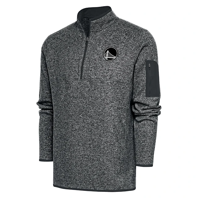 Men's Antigua Heather Gray Golden State Warriors Metallic Logo Big & Tall Fortune Quarter-Zip Jacket