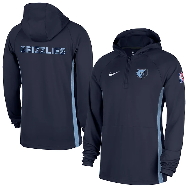 Men's Nike Blue Detroit Pistons Authentic On Court Zone Quarter-Zip Dri-FIT Hoodie Jacket