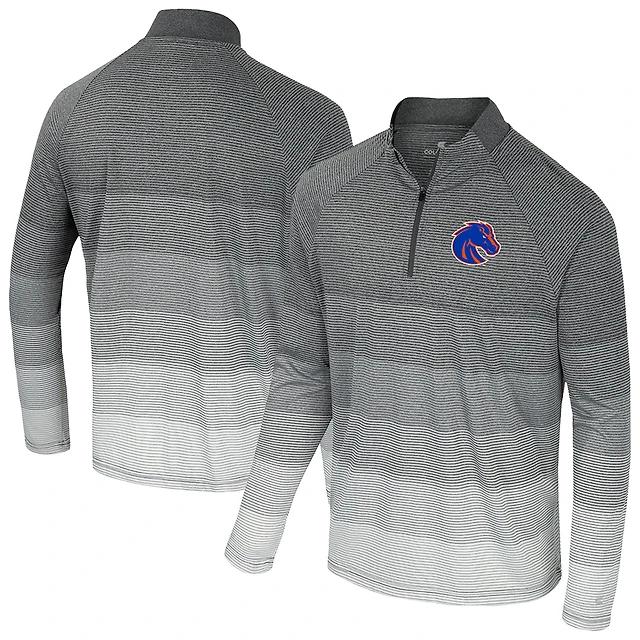 Men's Colosseum Gray Boise State Broncos AI Striped Mesh Quarter-Zip Raglan Windshirt