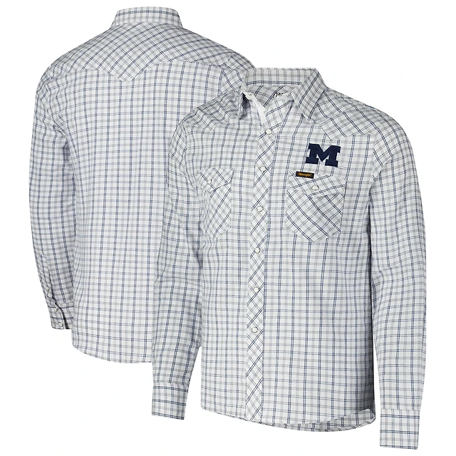 Men's Colosseum x Wrangler White Kansas Jayhawks Plaid Window Pane Long Sleeve Full-Snap Shirt