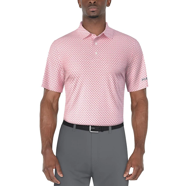 PGA TOUR Course Essentials Men's All Over Mini Regimental Palm Printed Short Sleeve Polo Shirt