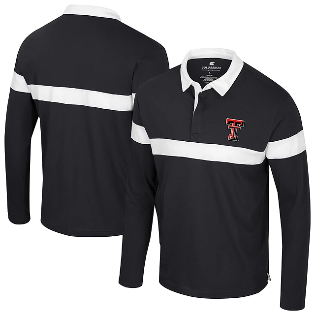 Men's Colosseum Black Texas Tech Red Raiders Too Cool For School Long Sleeve Polo