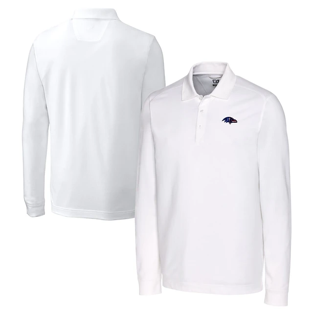 Men's Cutter & Buck White Baltimore Ravens Big Tall Advantage Tri-Blend Pique Long Sleeve Polo
