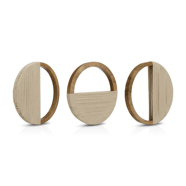 Set of 3 Mango Wood and Rope Circle Wall Decor