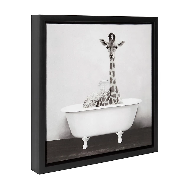 DesignOvations Baby Giraffe in the Tub Framed Canvas Wall Art, 14" x 14"