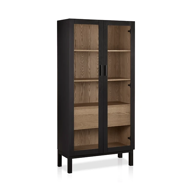 Black Wooden Buffet with Glass Doors