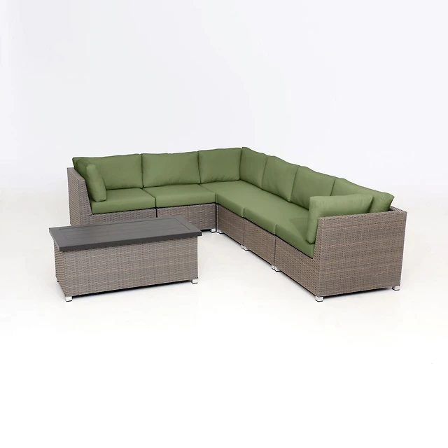 Chambers Bay Collection 7-Piece Aluminum Patio Conversation Set with Green Cushions