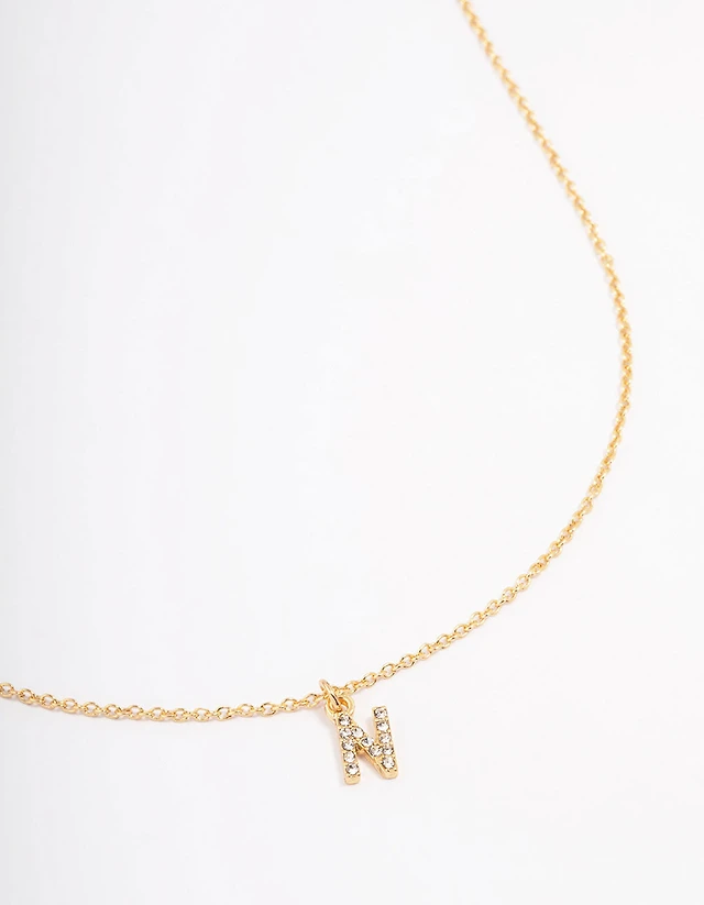 Gold Plated Cubic Zirconia Letter N Necklace