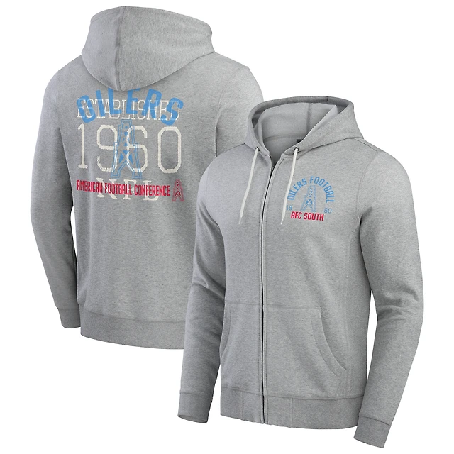 Men's Darius Rucker Collection by Fanatics Heather Gray Houston Oilers Vintage Stripe Full-Zip Hoodie