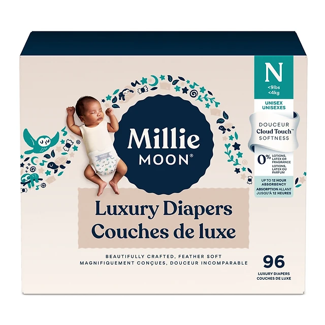 Millie Moon Luxury Diapers, Size Newborn, 96 Count