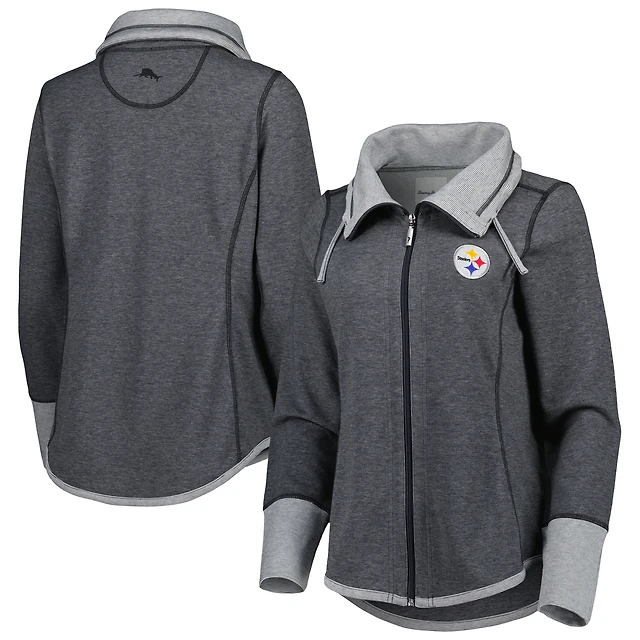 Women's Tommy Bahama Heathered Black Pittsburgh Steelers Sport Sun Fade Full-Zip Sweatshirt