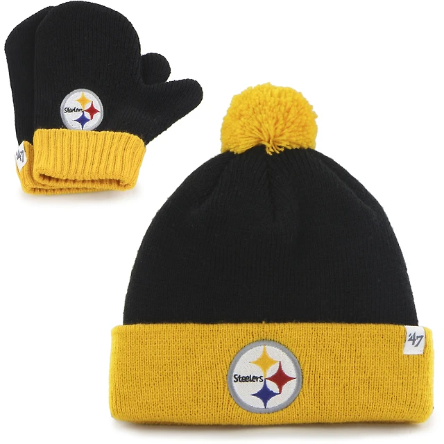 Newborn Outerstuff Black Pittsburgh Steelers Little Champ Three-Piece Long Sleeve Bodysuit, Pants and Cuffed Hat Set