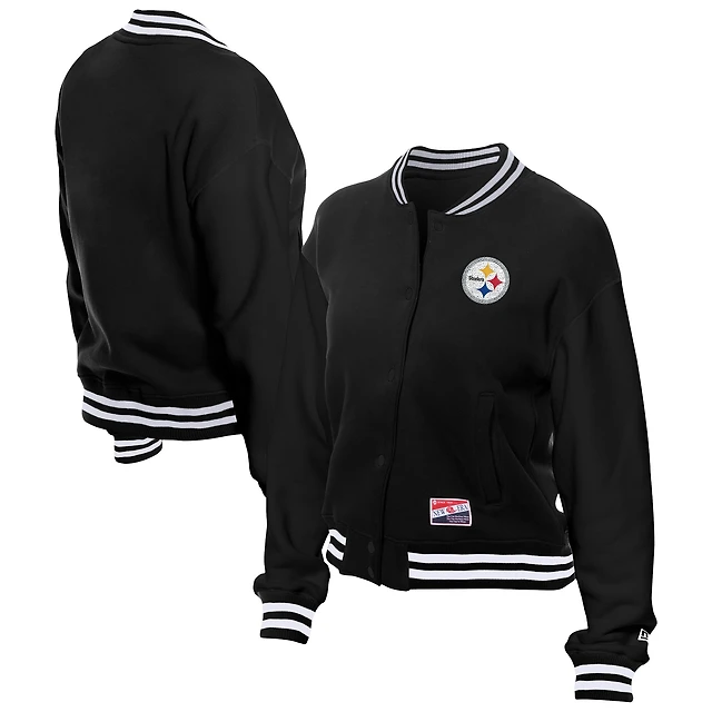Women's New Era Black Pittsburgh Steelers Throwback Fleece Full-Snap Jacket