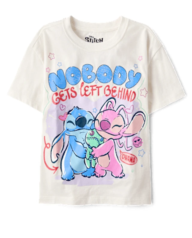 Girls Stitch™ Nobody Gets Left Behind Glitter Oversized Graphic Tee